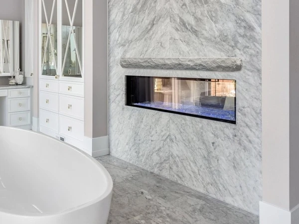 * Please Note: Due to the handmade nature of this product, variations in texture and color will occur. Add a touch of natural style to your fireplace without interrupting your sleek and modern design sense. Lexington Hearth presents their beautiful Rockface Mantel Shelf series, available in cool Bluegrass Fog and warm Turfway Tan. Each cast stone mantel shelf installs easily with the included kit and immediately instills charm and decadence into your fireplace. The Burncrete construction is non-combustible and infused with mica to add a subtle sparkle to the mantel’s chiseled face. Lexington Hearth’s house artists hand-paint each Rockface Mantel Shelf for a piece that is unique, stylish, and made with precision.