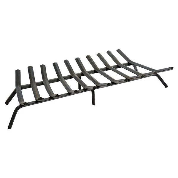 Lift your spirits with a glowing fire in your hearth this winter. This heavy-duty standard fireplace grate will make building and maintaining your fire easy! The 3/4″ solid steel bars cradle the wood and keep logs from spreading, or rolling out of the fireplace, which means your fire will burn hotter longer. The 3 inches of clearance under the crossbar not only provide plenty of air flow, but also allow plenty of room to clear ashes away after the fire has burned out. This grate measures 36 inches wide in front, 32 inches wide in back, and has a total depth of 14 inches. Be the first to review “Minuteman 36 Inch Tapered Fireplace Grate”LoginRegister |