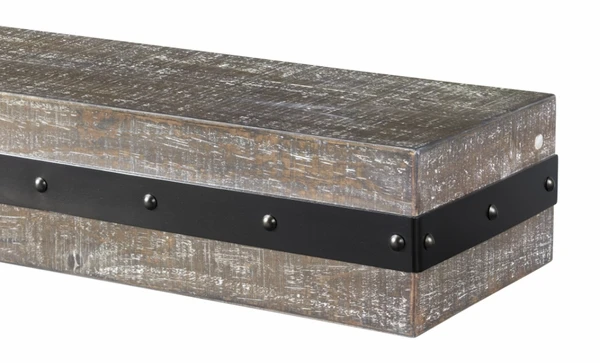 * Please Note: Wood is considered a combustible material. Heat clearances must be adhered to. *Also Note: Mounting hardware for hanger rail and scribe moldings are not included. Pearl does not treat the mantel as trim or molding but as a beautiful piece of furniture that is the focal point of the entire room, the emotional core. And nothing will demonstrate that more than the Pearl Mantels Gristmill Finish Bedford Mantel Shelf. Industrial vintage at its finest, the Bedford, wrapped with a black metal bradded band, is made from Red Pine and hand distressed with a warm Gristmill distressed chalk wash finish. The wash, over time, will fade creating a perfect harmonized highlight. The ample nine-inch shelf depth allows plenty of display room. Use over the hearth, in the bedroom, bathroom, kitchen, den, or anywhere you need a little something extra for storage or treasures. Look for the pearl inlay that graces the right-hand side of the shelf as proof that you have received an authentic Pearl Mantel.